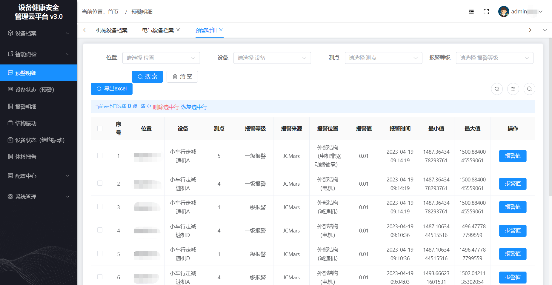 2)系统分析能力能对设备的内部零部件和外部结构振动进行一定的预警,大大降低现场操作人员的专业要求,提高公司设备管理水平。